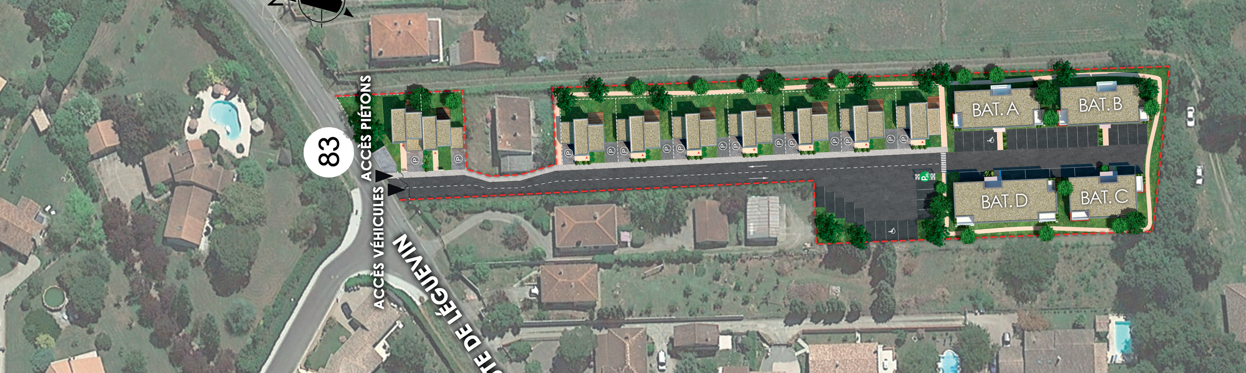 A 2 kilomètres au sud-ouest du centre historique de Pibrac et de ses commerces, la résidence LES CHÊNES s’inscrit dans un environnement résidentiel composé majoritairement de belles villas avec piscine. Ce quartier en plein renouveau verra à terme sa liaison avec le centre-ville renforcée par des cheminements piétons et des voies douces. Entourée de jardins verdoyants, la résidence
